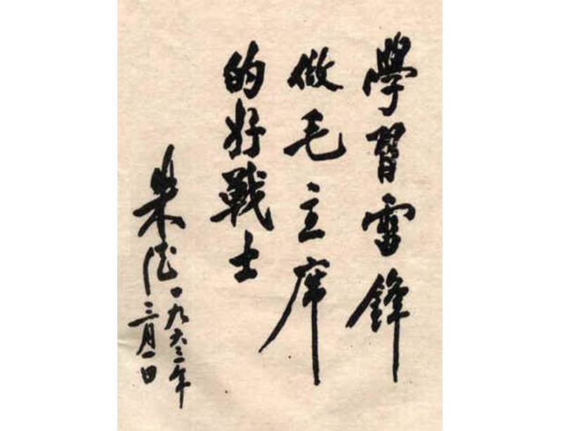 题词人数:17 士兵雷锋(1940-1962)于1963年、1977年、1990年获毛泽东、刘少奇、周恩来、朱德、董必武、邓小平、江泽民等17位党和国家三代领导人题词,共计18条。且自1963年起至今全国各地发行了105种有关“雷锋”的纪念邮票,出版了400余种有关“雷锋”的书籍。 2012年2月由中国社会福利基金会学雷锋专项基金管理委员会统计。