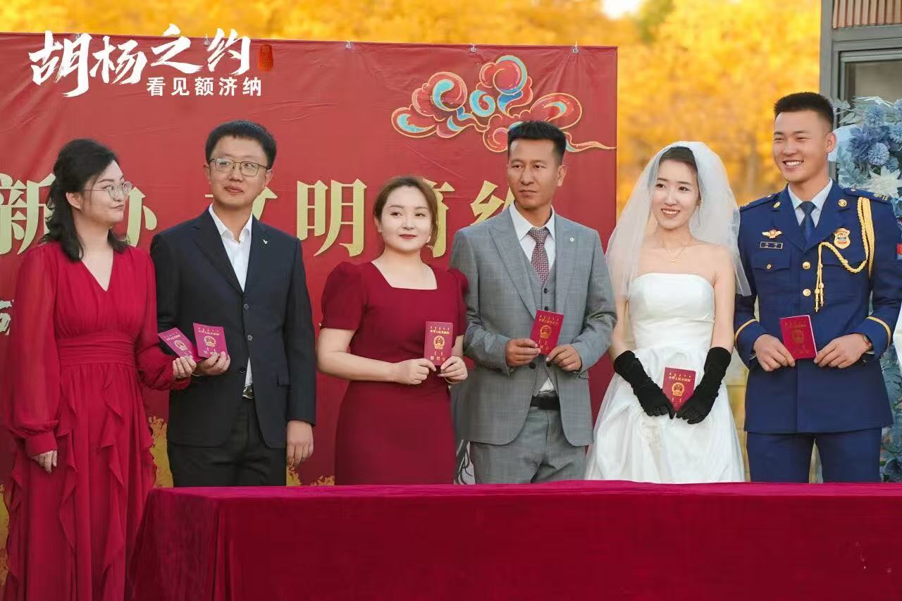 数量:101对2025年10月2日由额济纳旗文化旅游广电局、内蒙古广电传媒有限责任公司组织的“千年胡杨 百年姻缘集体婚礼大型主题活动”在内蒙古自治区阿拉善盟额济纳胡杨林旅游区举行,现场101对新人参与此次活动。